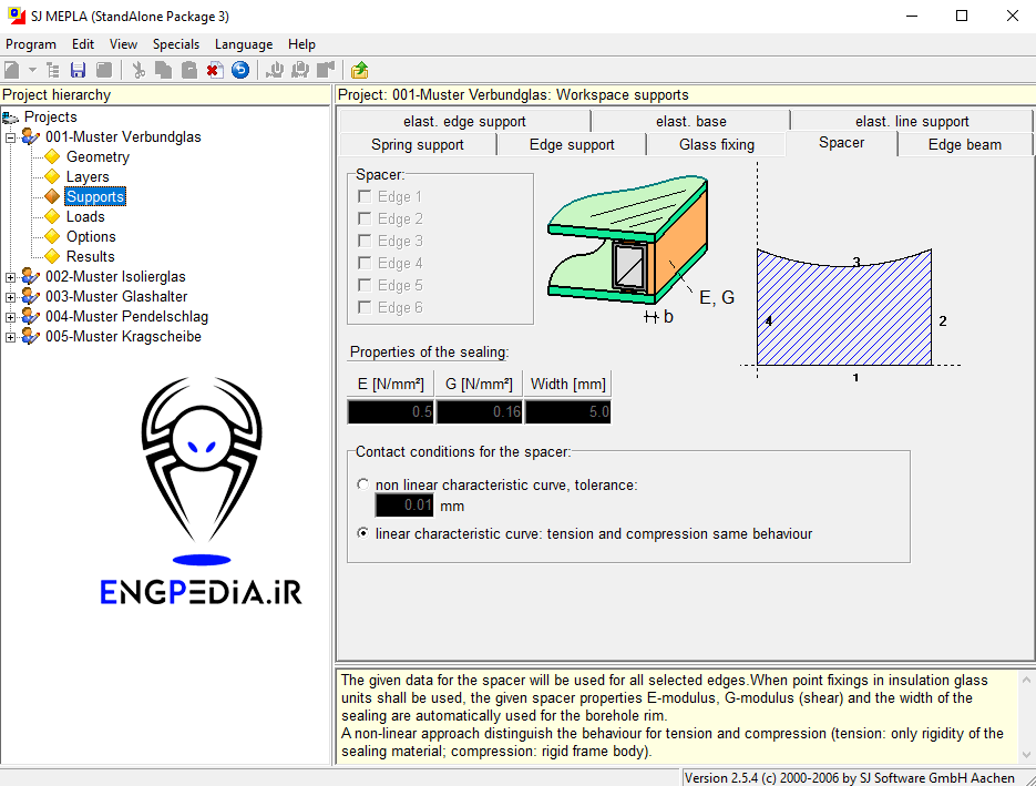 نرم افزار SJ MEPLA یک برنامه اجزاء محدود است که بهطور ویژه برای انجام محاسبات استاتیکی و پویا در سازههای شیشهای توسعه یافته است. با استفاده از این نرمافزار، میتوانید محاسباتی را برای سیستمهای مختلف از جمله شیشههای لمینیته، اتصالات نقطهای، کلیپهای نگهدارنده و حتی شیشههای دوجداره انجام دهید. هر نوع شرایط باربری و بارگذاری ممکن است.