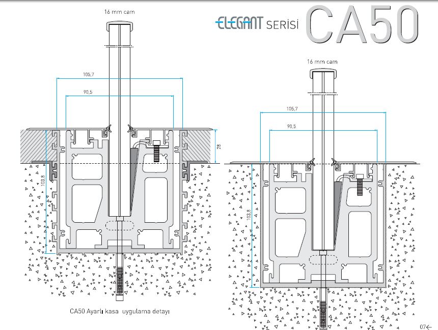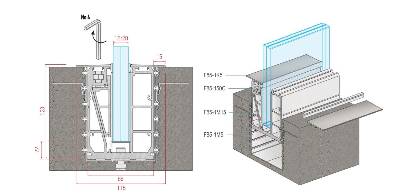 هر چه ارتفاع پنلهای شیشهای بیشتر باشد، تعداد پایههای u شکل افزایش مییابد. نرده های شیشه ای که به این روش اجرا میشوند هیچ پایه عمودی نداشته و نمای ظاهری نرده به صورت یک دیواره تمام شیشهای یک پارچه میباشد.